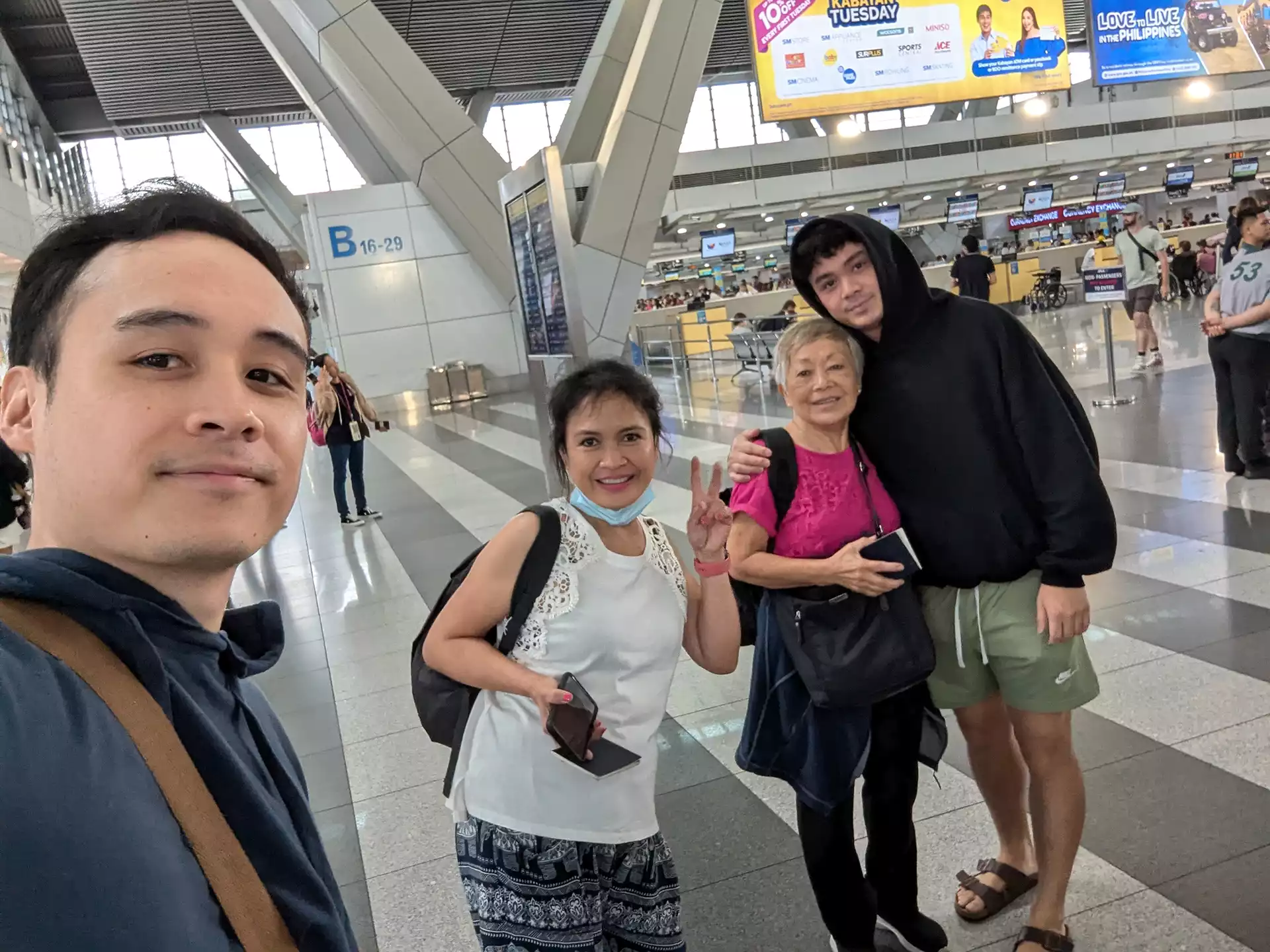 (My brother and I had to ‘sneak’ in and out of the airport just to send off my family).
